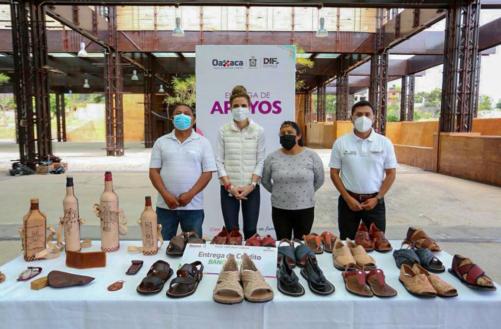 “Me hace muy feliz entregar este crédito, ya que el maestro Filogonio hace estas maravillosas piezas de sandalias, y él necesitaba este crédito para hacer crecer su negocio. Al día de hoy, se han entregado más de 37 mil créditos en la administración de mi esposo, nuestro gobernador, Alejandro Murat; más de 2 mil 200 millones de pesos, brindando la oportunidad para que pequeños empresarios y empresarias puedan seguir trabajando y sobre todo, cumpliendo todos sus sueños, señaló Ivette Morán de Murat.