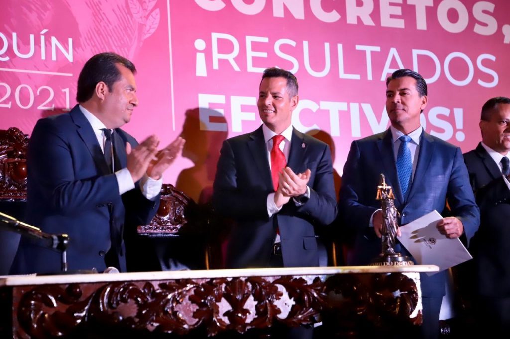 En este acto realizado en la Plaza de la Danza, el Jefe del Poder Ejecutivo reconoció el trabajo y los logros alcanzados por el munícipe capitalino en su primer año de gestión, al tiempo de reiterar la disposición de su gobierno para seguir fortaleciendo los programas y acciones que contribuyan al desarrollo de la entidad.