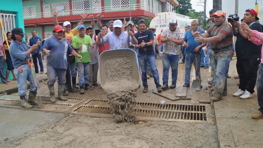 Para la pavimentación de 350 metros cuadrados y la construcción de una boca de tormenta en la Calle 3 de la colonia El Diamante se utilizaron 9 viajes de grava y 14 toneladas de cemento de las cuales 10 puso el Ayuntamiento de Tuxtepec y 4 los habitantes de este asentamiento humano.