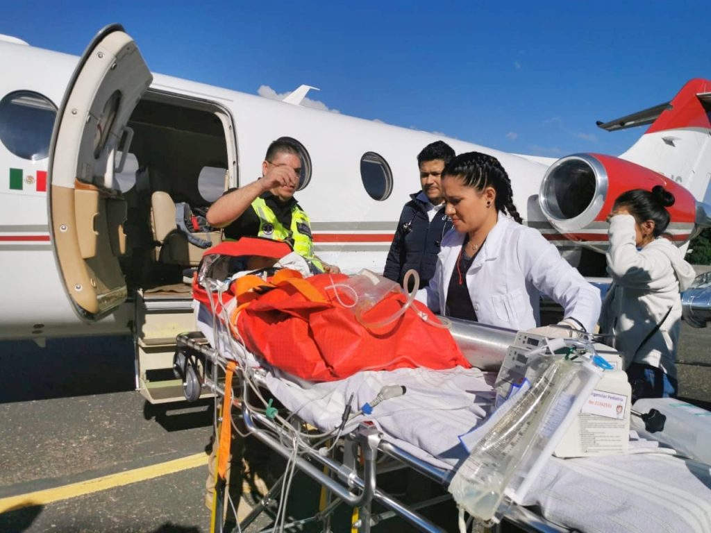 Personal médico que atendían a Victoria, informaron que por tratarse de una menor de edad y ante la complejidad de las quemaduras que presenta, el traslado de la paciente se realizó en un avión del gobierno estatal, y se coordinó con la Fundación Michou y Mau, que preside la señora Virginia Sendel.