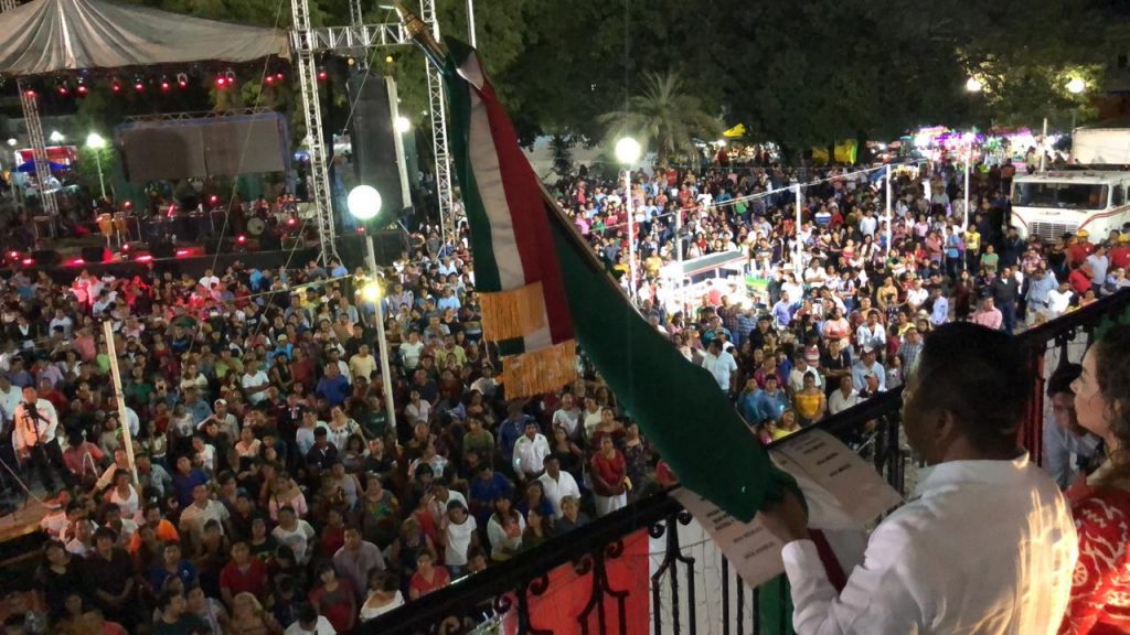 Tuxtepec, Oaxaca.- Con motivo de la celebración del Aniversario del inicio de la Independencia de México, el Presidente Municipal de Tuxtepec, Fernando Bautista Dávila, encabezó la ceremonia oficial del “Grito de Independencia” en punto de las 23:00 horas, acompañado de su esposa, señora María Luisa Vallejo, integrantes de su Cabildo así como de autoridades militares, cuerpos de seguridad asentados en Tuxtepec, desde el balcón principal de Palacio Municipal, donde el alcalde junto a una emotiva multitud, aclamaron a los héroes que nos dieron Patria y Libertad.