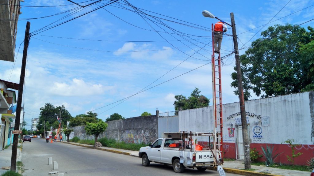 Tuxtepec, Oaxaca.- El programa de modernización del alumbrado público en el municipio de Tuxtepec presenta ya un importante avance, a la fecha 25 colonias y comunidades han sido atendidas en sus vías primarias, mientras que las 9 colonias del centro de la ciudad y los bulevares están completamente iluminadas, con la instalación de las primeras 3,100 luminarias adquiridas en la primera etapa de este importante proyecto.
