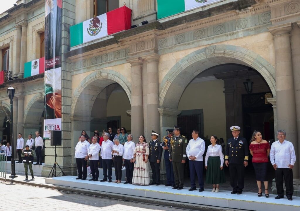 Acompañado también por la Presidenta Honoraria del Sistema para el Desarrollo Integral de la Familia (DIF) Oaxaca Irma Bolaños Quijano, Jara Cruz y todas las personas asistentes rindieron honores a la Bandera Nacional y se entonó el Himno Nacional Mexicano que fue interpretado por la América 2023, Liliana Suzey Hernández Zárate y su coro, Alis Harim Alavez Ángulo y Ximena Aly Poblete Ruiz.