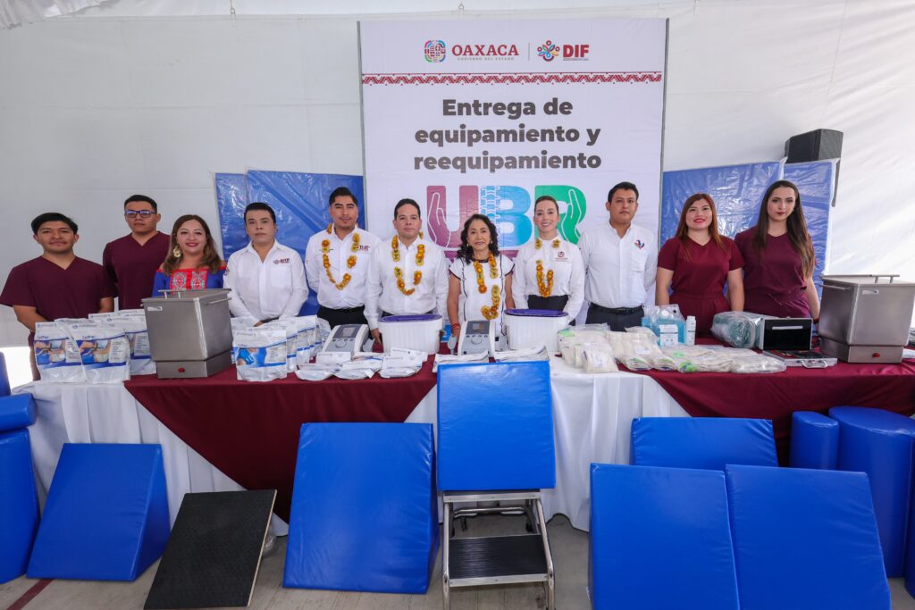 En el evento oficial realizado en las instalaciones de la UBR, la Presidenta Honoraria del Sistema DIF Oaxaca en compañía del personal del organismo estatal y autoridades municipales constató cómo los materiales y equipamiento son utilizados en las electroterapias, magnetoterapia, mecanoterapia, termoterapia, entre otras.