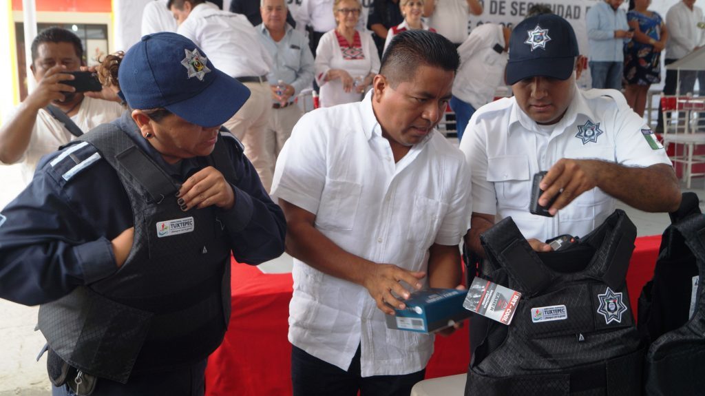 : Siempre con la Seguridad y con Rumbo por Oaxaca, el Presidente Fernando Bautista Dávila dotó de apoyos para vivienda, chalecos y cámaras de solapa a elementos de la Preventiva Municipal de Tuxtepec.