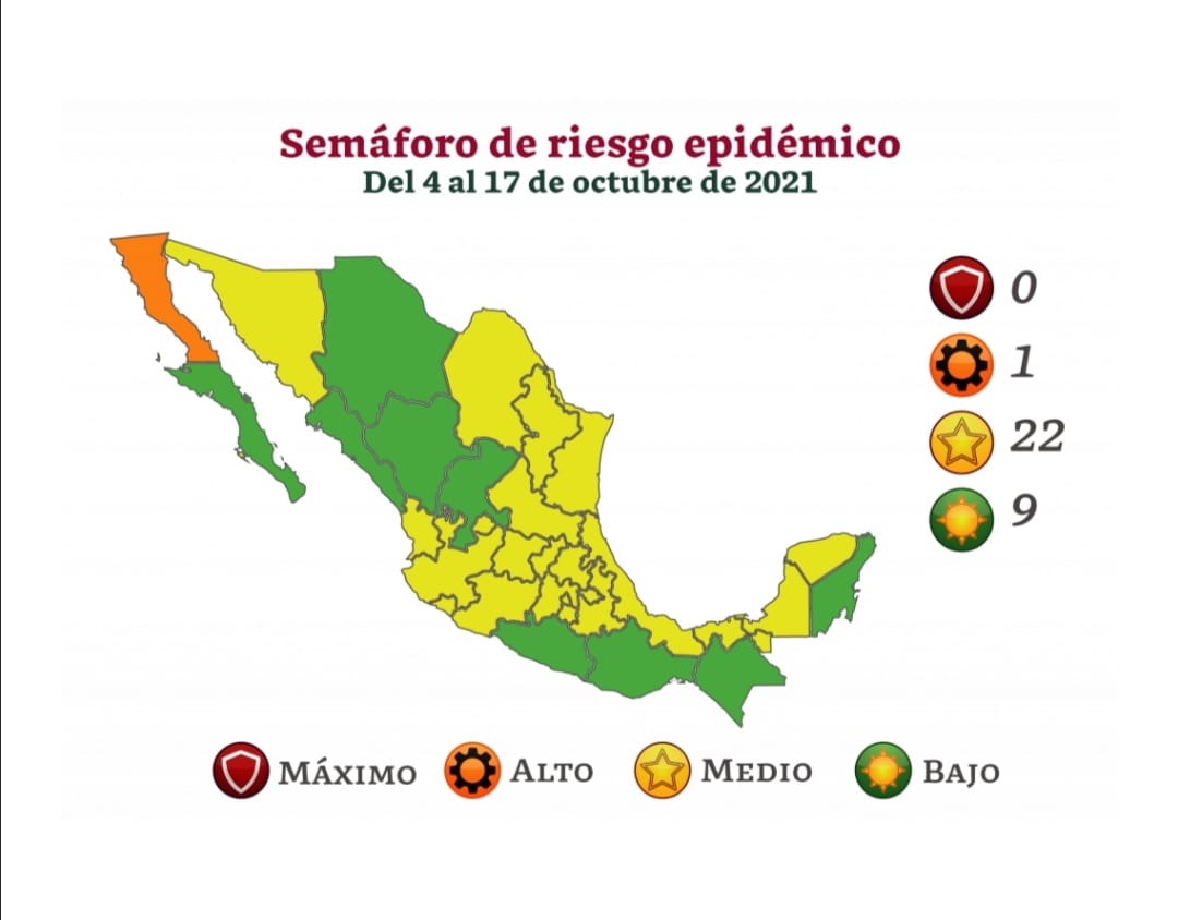 Oaxaca de Juárez, Oax, 01 de octubre de 2021.- Oaxaca pasa al color verde en el semáforo de riesgo epidémico de nivel Federal, el cual entrará en vigor el próximo 4 de octubre al 17 del mismo mes. Sin embargo, esto no significa que se deban relajar las medidas preventivas o que la pandemia por COVID-19 haya culminado, informaron los Servicios de Salud de Oaxaca (SSO).