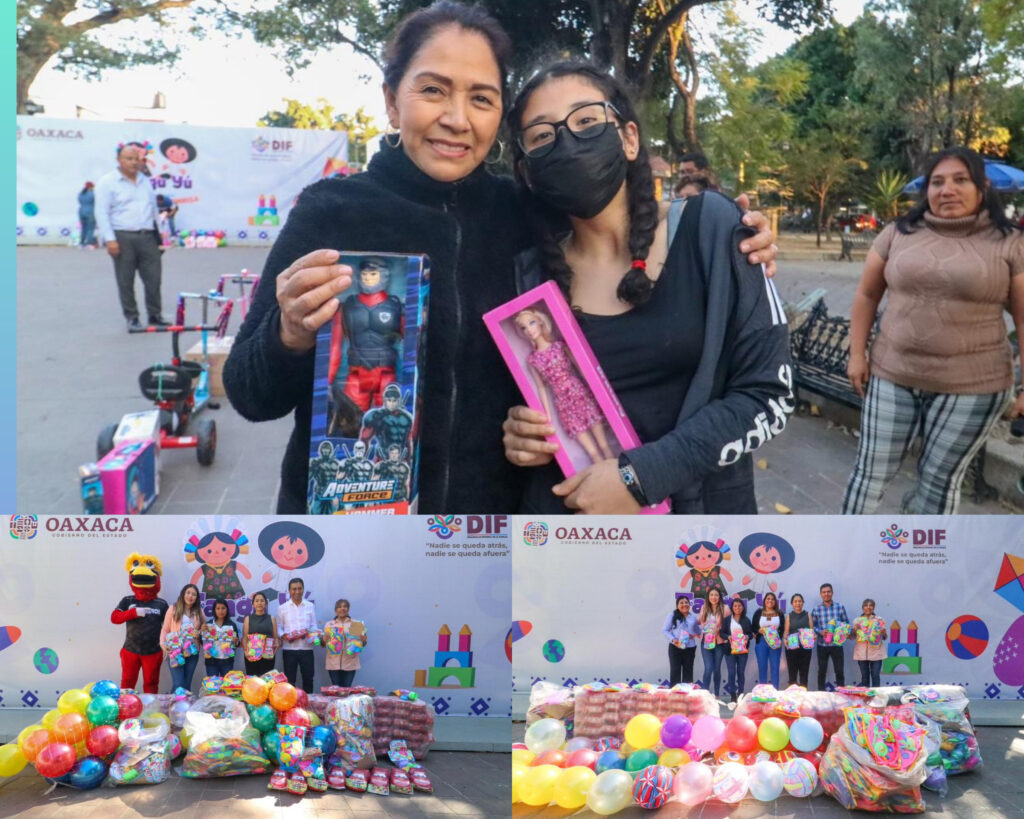 Oaxaca de Juárez, Oax. 5 de enero de 2023.- ¡Se superó la meta de 18 mil juguetes!, las oaxaqueñas y los oaxaqueños demostraron una vez más su calidad humana para sumar esfuerzos con el Sistema Estatal para el Desarrollo Integral de la Familia (DIF) de Oaxaca, a través de la colecta “Tangu Yú”, dona un juguete, regala una sonrisa; y lograr que miles de niñas y niños estén felices este “Día de Reyes” al recibir uno de estos obsequios que contribuirá a despertar su imaginación y recrear las historias que les motive a desarrollar su buen ánimo por sentirse tomados en cuenta.