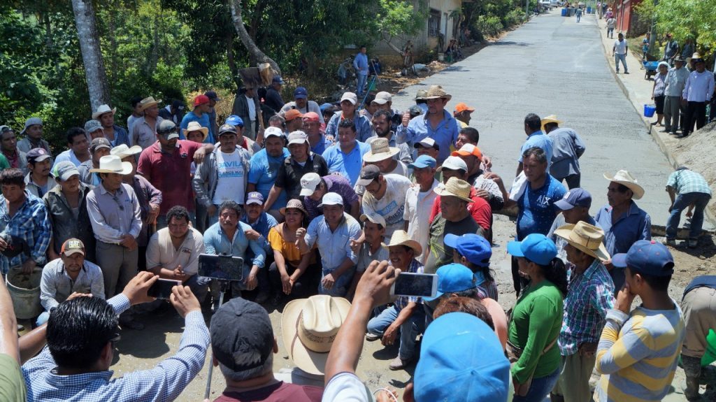 Tuxtepec, Oaxaca.- Como parte de las acciones para que la población cuente con calles más seguras, el presidente municipal Fernando Bautista Dávila, encabezó este sábado un Tequio en El Camalotal, en el que hombres, mujeres y autoridades municipales llevaron a cabo la pavimentación de la calle principal de esta comunidad.