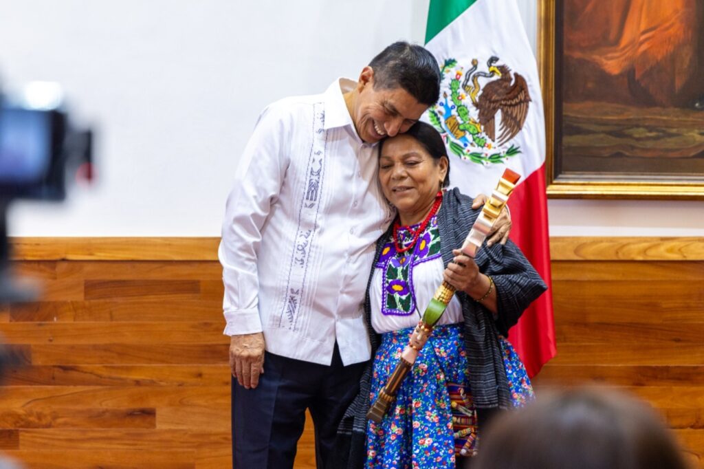 En este marco felicitó a Juana Hernández López, originaria de Santiago Juxtlahuaca, en la región Mixteca, quien resultó electa como Diosa Centéotl y será la embajadora, no solo de la Guelaguetza 2024, si no en diversos eventos y actividades culturales.